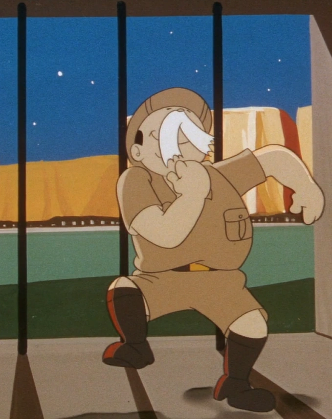 Meanwhile, Mr. Pompous (Dr. Mustache) comes around once again to try and find Kenichi (Roger). He finds him after getting captured by Tonga and attacked by crocodiles. The two unfortunately get captured again and are taken as prisoners. When it starts snowing, the animals get convinced to let the two out of their cages in order to get the animals warm. Because of this, the animals turn against Tonga when she returns.
